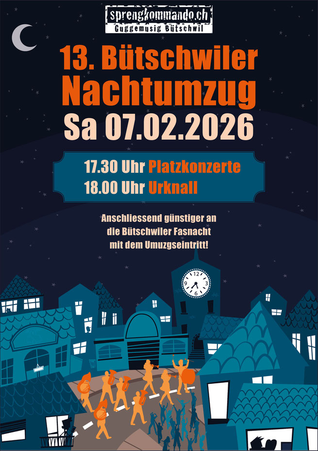 Versicherungsbestätigung können per Mail an: nachtumzug@sprengkommando.ch oder per Post an Adrian Rutz, Innerfeld 30, 9606 Bütschwil gesendet werden.
